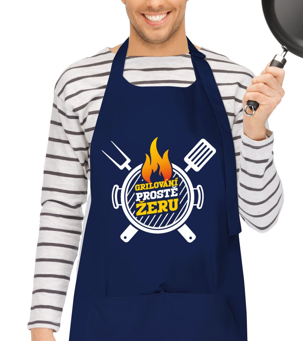 Grilovací zástěra pro muže, kteří grilování fakt žerou. Grilovací zástěra je vyrobena 100% bavlny v gramáži 280 g/m2 francouzského výrobce. Nejmodernější technologie potisku zaručuje, že se potisk neloupe a je příjemný na dotek. Grilovací zástěra má v předu dvě velké kapsy, pro uložení nejrůznějších grilovacích ingrediencí. Kolem krku je nastavitelný řemínek s přezkou. Tato grilovací zástěra je v nabídce v modré modré barvě. Rozměr zástěry je vhodný i pro prostorově výraznější muže:). Vyberte si krásnou grilovací zástěru na našem eshopu, kterou jinde nekoupíte.